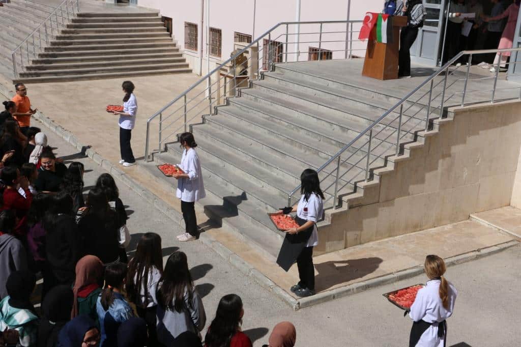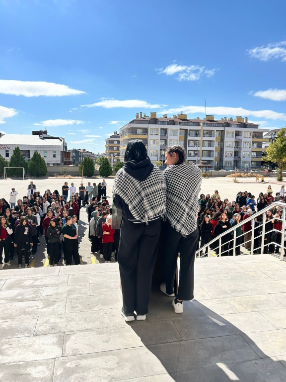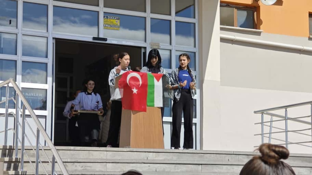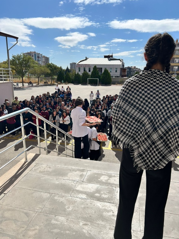 Okulumuzda, Filistin halkının yaşadığı insani drama dikkat çekmek ve öğrencilerimizde duyarlılık oluşturmak amacıyla “Gazze’ye Farkındalık” temalı bir program düzenlendi. Programda, Kur’an-ı Kerim tilaveti, şiir dinletileri ve duygu dolu sunumlar yer aldı. Öğrencilerimiz, kardeşlik, empati ve barış temalarını içeren etkinliklerle Filistin halkına destek mesajlarını ilettiler. Etkinliğin sonunda öğrencilere mavi kurdele dağıtılıp, karpuz ikramı yapıldı.