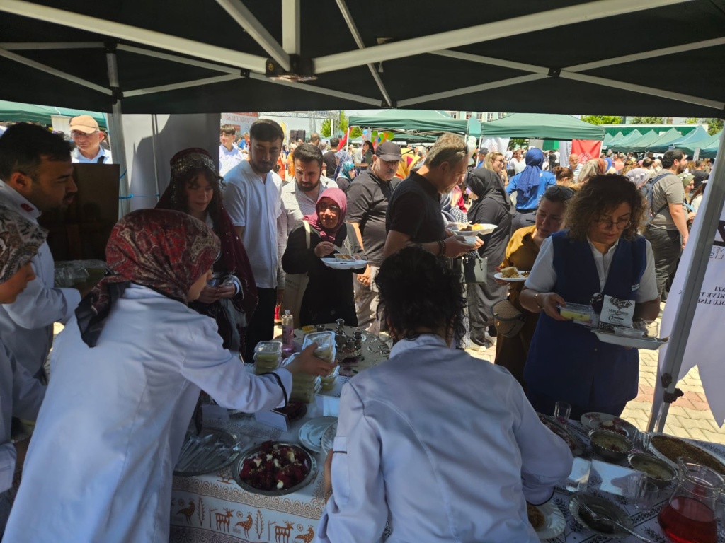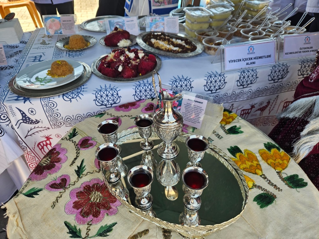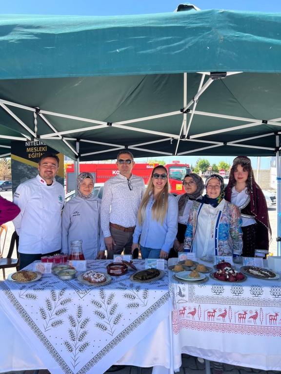 Cumhurbaşkanımız Sayın Recep Tayyip Erdoğan'ın eşi Sayın Emine Erdoğan'ın öncülüğünde, Kültür ve Turizm Bakanlığı desteğiyle yurt içi ve yurt dışında 21–27 Mayıs 2025 tarihleri arasında kutlanan Türk Mutfağı Haftası kapsamında ilimizde Valiliğimiz koordinasyonunda çeşitli etkinlikler düzenlenmektedir. Bu kapsamda; Valimiz Sayın İbrahim Akın'ın katılımıyla 22 Mayıs 2025 tarihinde Meram Şehir ve Yaşam Kültürü Müzesinde gerçekleştirilen etkinlikler, geleneksel mutfak kültürümüzü yaşatmak, Türk mutfağının sağlıklı, köklü yapısını vurgulamak, bu mirasın tanınırlığını artırmak ve genç kuşaklara aktarmak amacıyla bu yıl dördüncü kez hayata geçirildi. Etkinliğe, Okulumuz ile beraber bünyesinde yiyecek içecek hizmetleri alanı bulunan toplamda 12 meslek lisemiz ile Hayat Boyu Öğrenme Genel Müdürlüğümüze bağlı 4 kurumumuz; Konya mutfağına ait coğrafi işaretli ürünleri tanıttıkları stantlarla katılım sağladı.